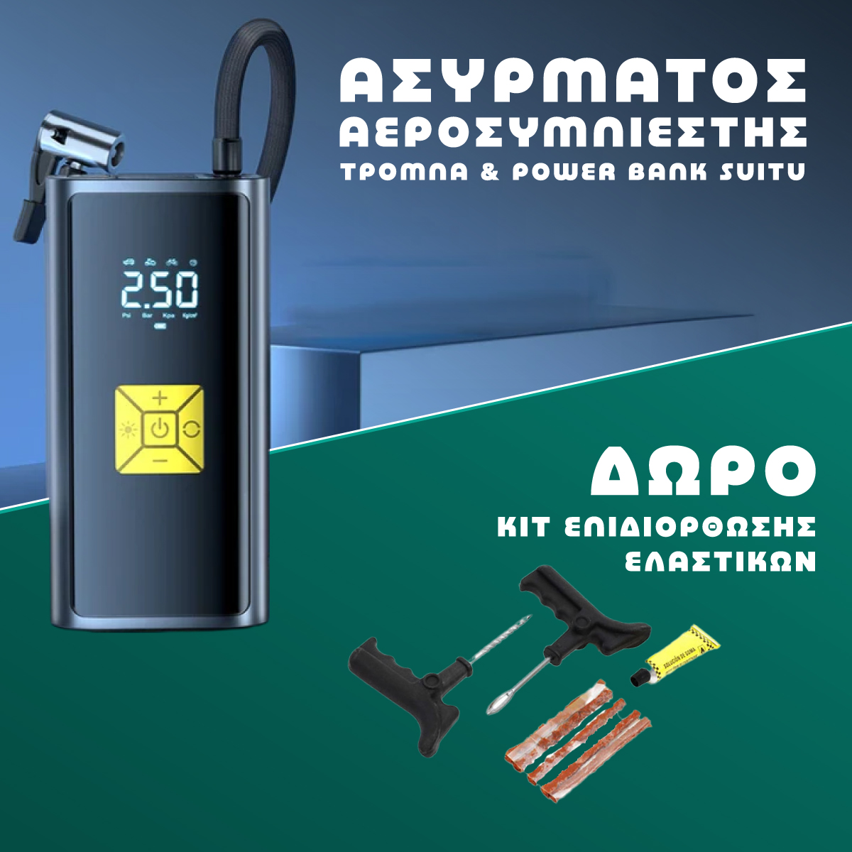 Ο αεροσυμπιεστής που σε κρατά πάντα προετοιμασμένο σε κάθε διαδρομή. Μικρός στο μέγεθος, τεράστιος στη χρησιμότητα.