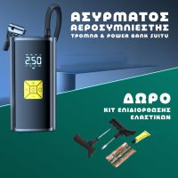 Ασύρματος επαναφορτιζόμενος αεροσυμπιεστής αέρος με ψηφιακή οθόνη LCD που λειτουργεί και ως power bank.