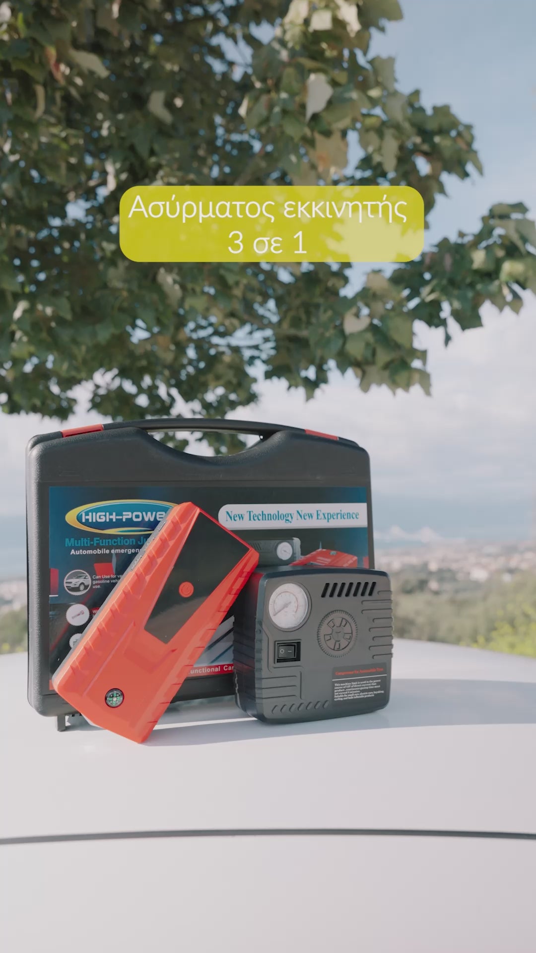 Με τον εκκινητή μπαταρίας 12V και τον ασύρματο αεροσυμπιεστή, έχεις στο πορτμπαγκάζ σου τα δύο σημαντικότερα εργαλεία αυτονομίας για κάθε διαδρομή.