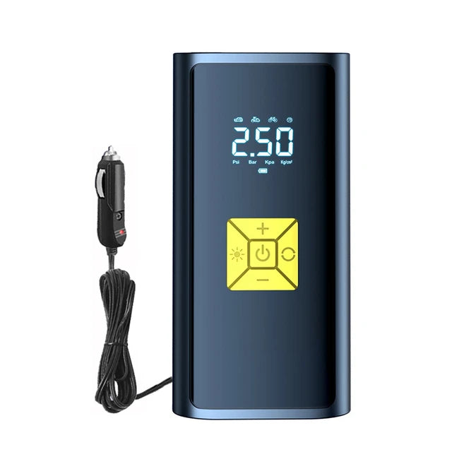 Ασύρματος επαναφορτιζόμενος αεροσυμπιεστής αέρος με ψηφιακή οθόνη LCD που λειτουργεί και ως power bank.